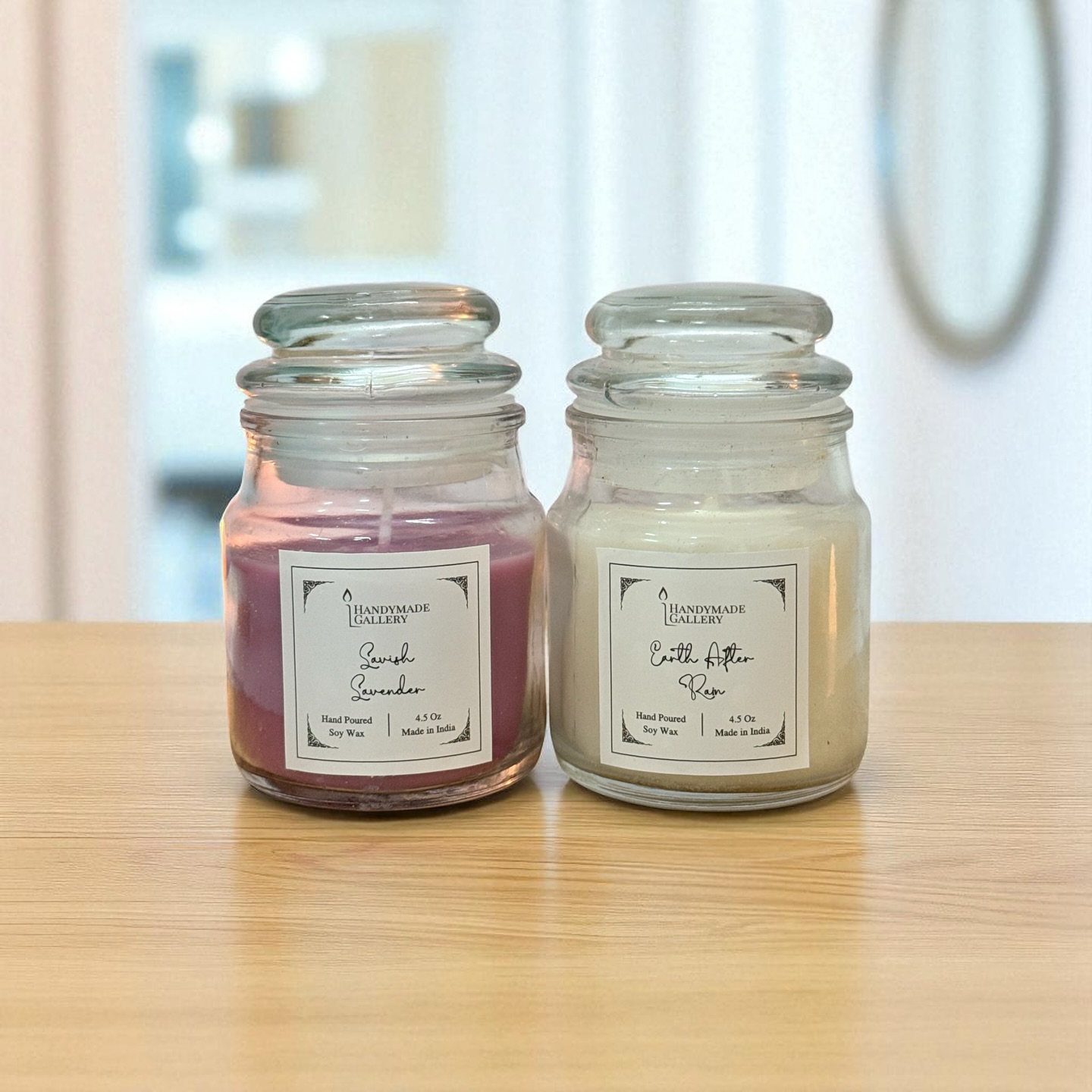 Handymade Gallery candles are hand-poured in small batches using natural soy wax, lead-free wicks, and premium fragrance oils. Unlike factory-made candles, ours are eco-friendly, non-toxic, and made with artistic precision. Every candle is designed to enhance your mood and bring tranquility to your space.